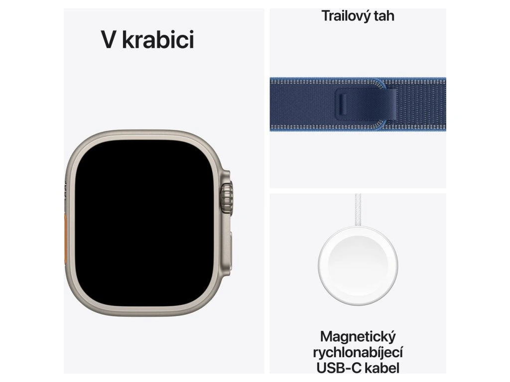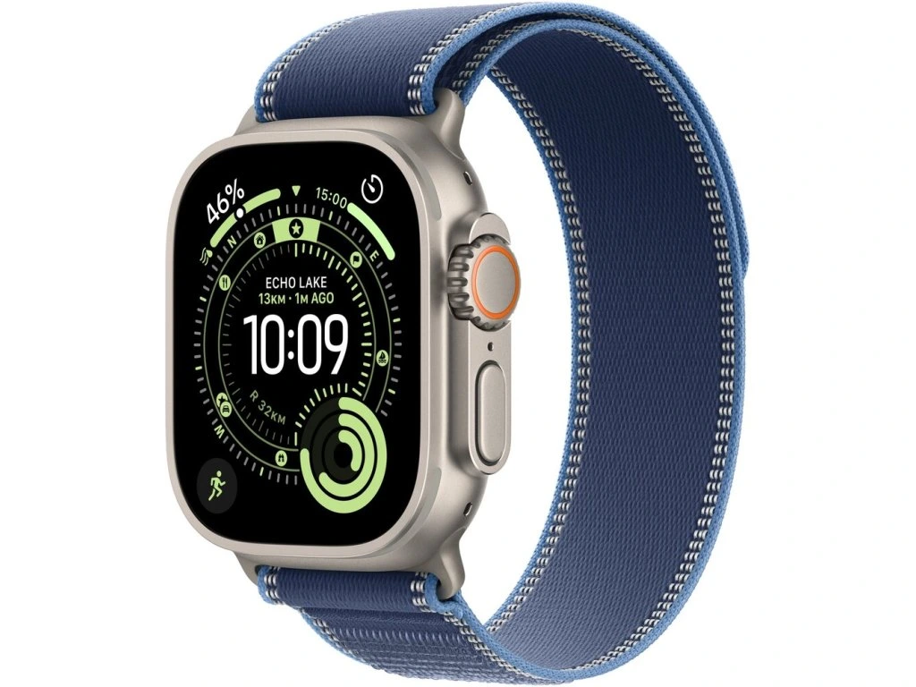 Apple Watch Ultra 3 (2025) 49mm Přírodní titan s modrým/jasně modrým trailovým tahem S/M