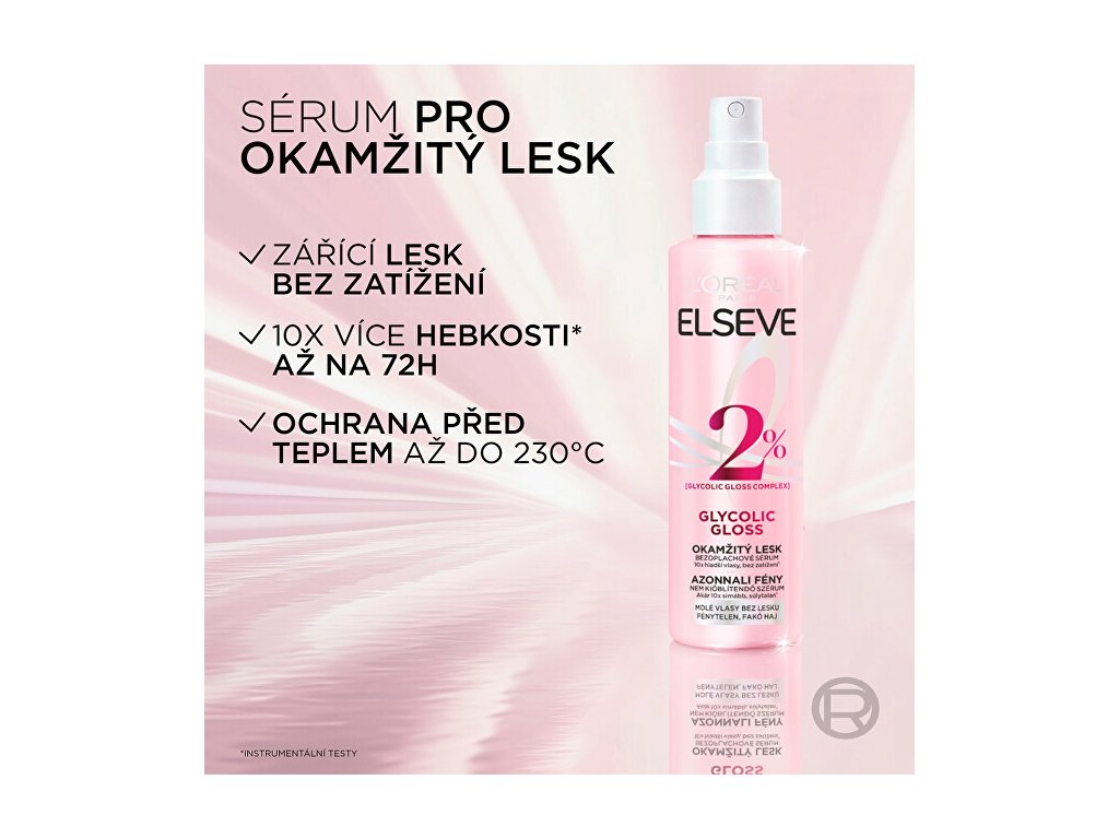 Lehké sérum ve spreji pro okamžitý lesk a intenzivní hebkost vlasů až na 72 hodin, a to bez zatížení. Díky obsahu kyseliny glykolové dodává vlasům až 10× více hebkosti a zároveň je chrání před tepelným stylingem až do 230 °C. Ideální jako závěrečná péče pro lesklé, uhlazené a zdravě vypadající vlasy.Doplňkové parametry