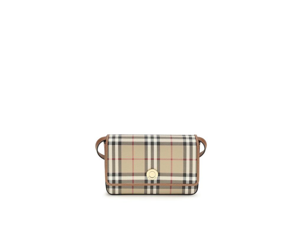 The Hampshire mini Shoulder Bag by Burberry is an elegant and versatile accessory featuprsten the classic check pattern. The top has a flap with a magnetic closure, adding practicality and security. The removable shoulder strap allows it to be carried as a clutch bag, making this bag ideal for sophisticated and casual looks alike. A must-have for any style collector.