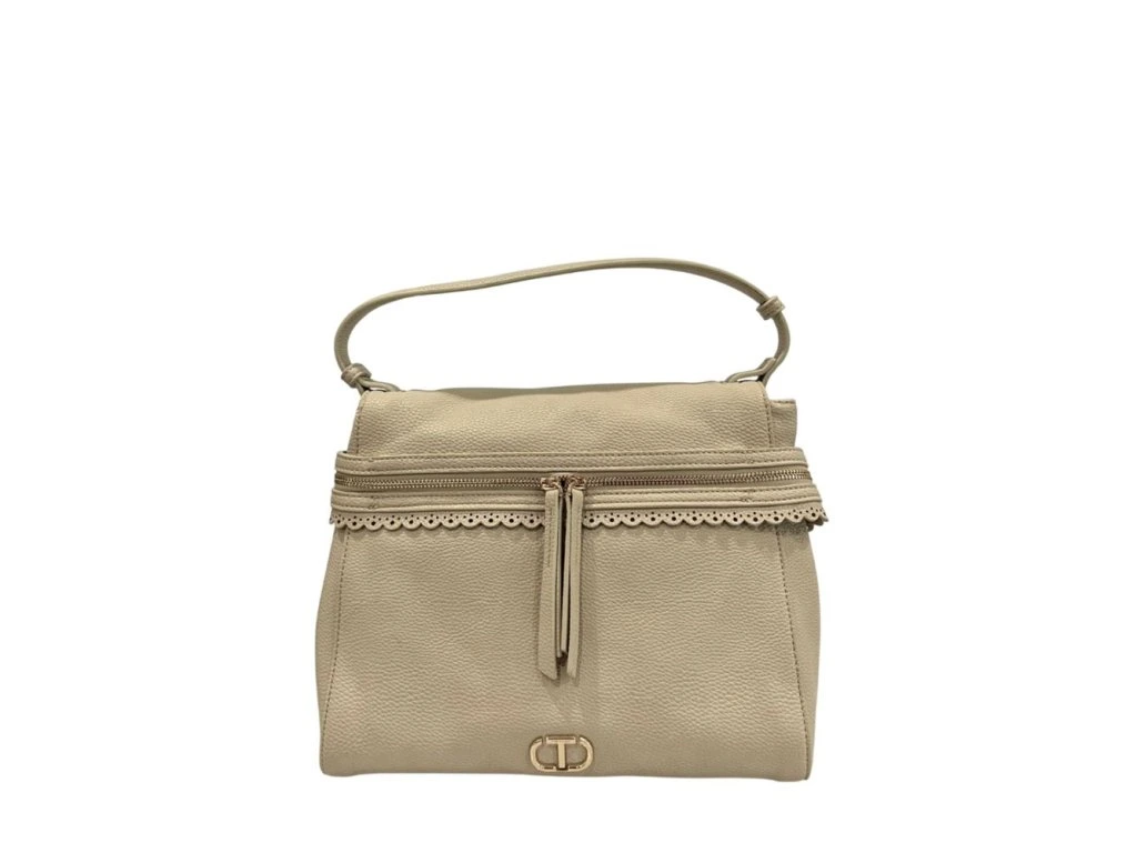 Dopřejte si ztělesnění sofistikovanosti s vynikající béžovou kabelkou Twinset, která je dokonale přizpůsobena pro každého, kdo je v módě. Elegantní design se vyznačuje všestranným nastavitelným ramenním popruhem a bezpečným zapínáním na zip, zvýrazněný zářivými zlatými kovovými detaily, které bez námahy pozvednou váš komplet. Tato kabelka, zdobená ikonickým logem Twinset na přední straně, ztělesňuje luxus a eleganci. Measuprsten je prostorný, ale elegantní 30x25x10 cm, hladce spojuje funkčnost se špičkovou módou. Nenechte si ujít šanci udělat odvážný statepánskýt s tímto nezbytným doplňkem.