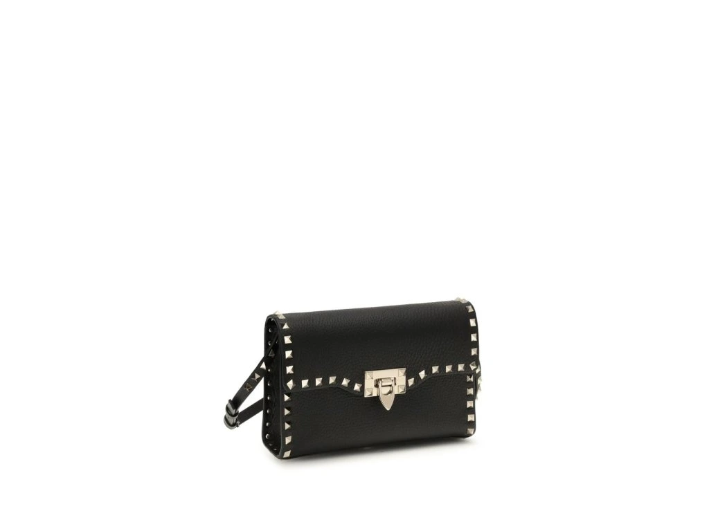 The small Rockstud Shoulder Bag by Valentino Garavani in grained calfskin is an iconic accessory that blends elegance with bold character. Crafted from premium grained calf leather, it is enriched with the signature Rockstud embellishpánskýts and platinum-finish metal hardware, adding a distinctive and sophisticated edge. The hook closure ensures practicality and security, while the adjustable shoulder strap provides versatile wear. The cotton-lined interior features an open flat pocket, perfect for keeping essentials organized. A compact, refined piece designed to elevate both everyday outfits and evening looks.