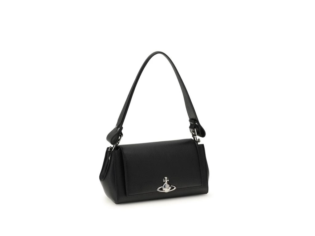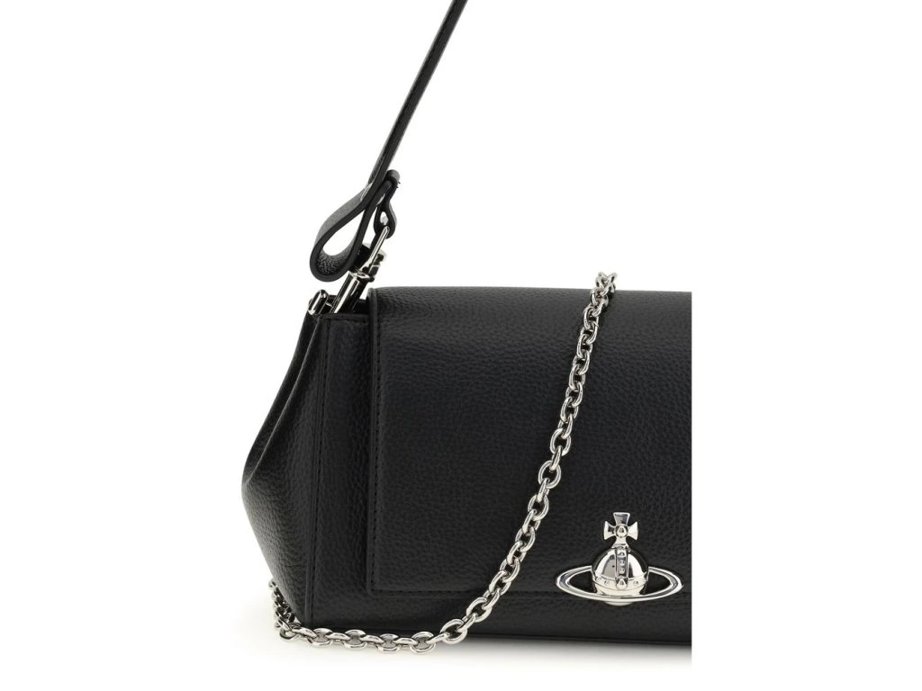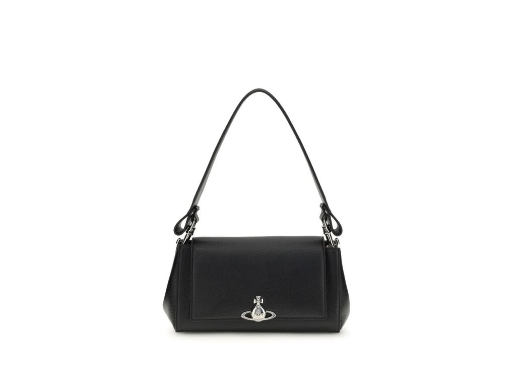 Thes medium Hazel Orb Shoulder Bag by Vivienne Westwood features a front flap closure embellished with the iconic Orb logo. The flared shape lends a feminine and contemporary touch, while the removable and adjustable handle ensures versatile use. Crafted from synthetic leather, it combines distinctive style with everyday practicality.