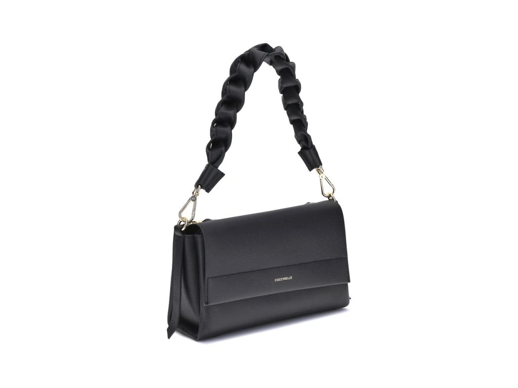 The Boheme Shoulder Bag by Coccinelle is an accessory with a refined and modern style, designed for casual femininity. Made of soft double leather, it stands out for its woven handle, an iconic detail that enhances its contemporary character. It features a practical flap and magnet closure, an internal zip pocket and an external pocket also closed with a zip, for functional organization. The design is completed by the adjustable and removable shoulder strap, which allows for versatile portability, from shoulder to cross-body.