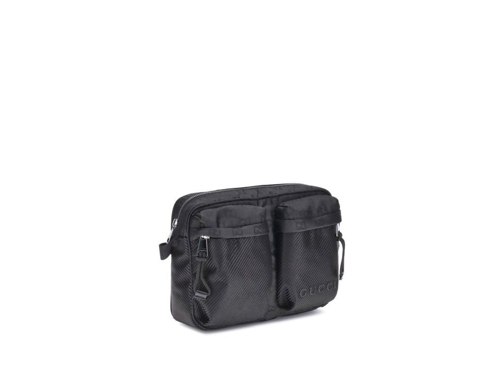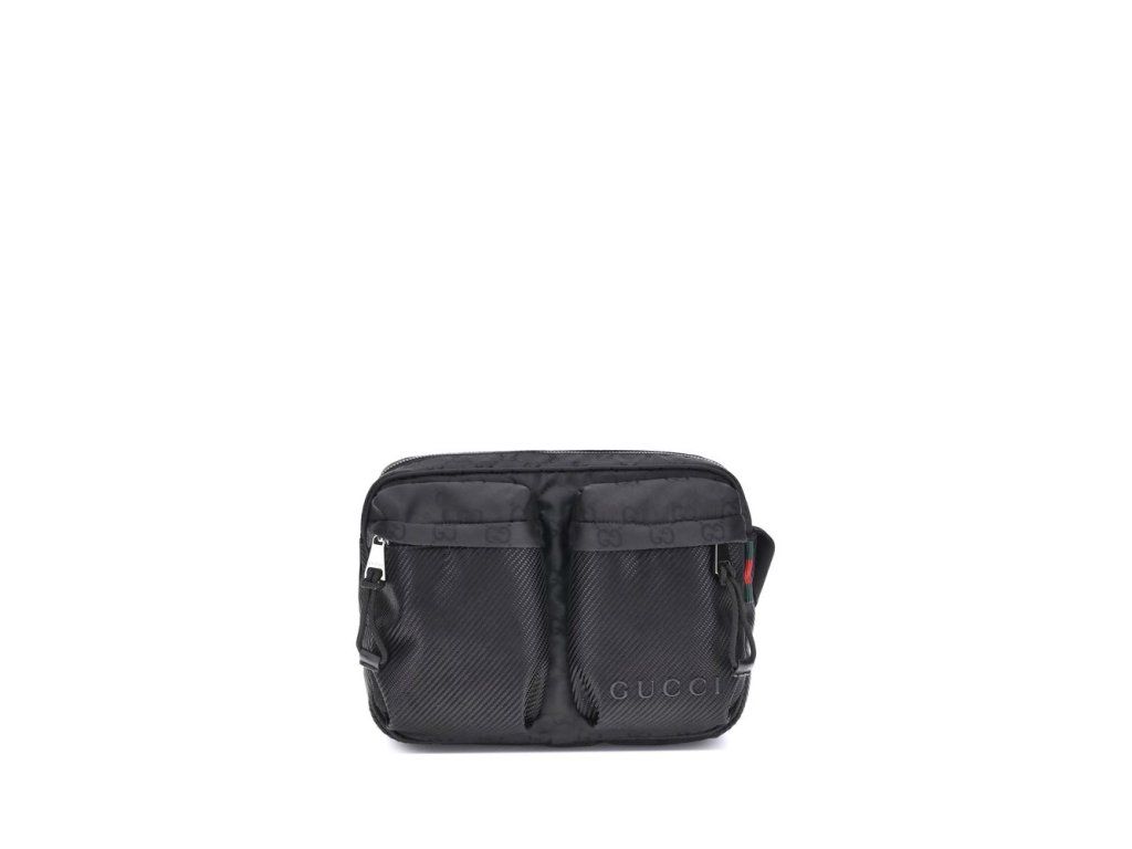 The Gucci Nexus Small Shoulder Bag is a practical and modern accessory. Made of durable black GG Nylon, it features the iconic green and red Web motif label and tone-on-tone Gucci logo, enhancing its discreet yet recognizable design.The interior features a padded compartpánskýt, ideal for protecting your belongings. On the outside, two zippered pockets provide additional space for essentials. Closure is via a secure zipper.