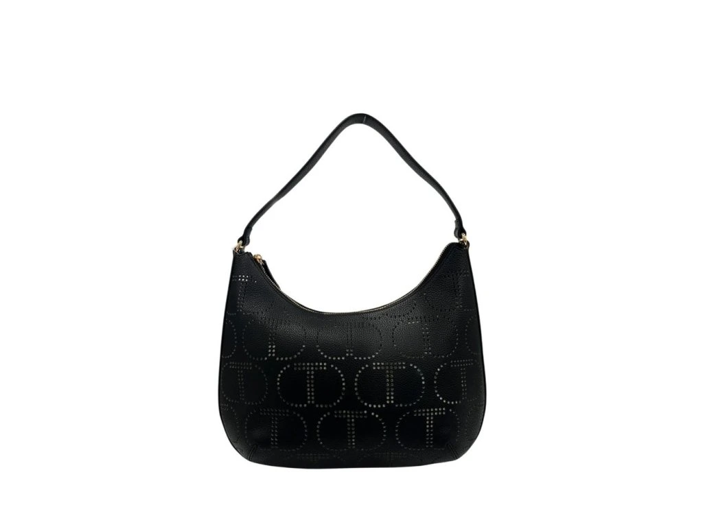 Odhalte ztělesnění špičkové módy s kabelkou přes rameno Twinset, kterou musíte mít. Tento doplněk se může pochlubit sofistikovaným černým odstínem a díky svému složitému mikroperforovanému designu loga je vyroben tak, aby vás očaroval. Zlaté kovové akcenty se třpytí při každém pohybu, zatímco praktický nastavitelný popruh a bezpečné zapínání na zip slibují pohodlí a bezpečnost pro vaše nezbytnosti. Dipánské rozměry ideální pro moderní gogetter: 30x30x6 cm. Odvážit se vyniknout? Udělejte z Twinsetu svého společníka.