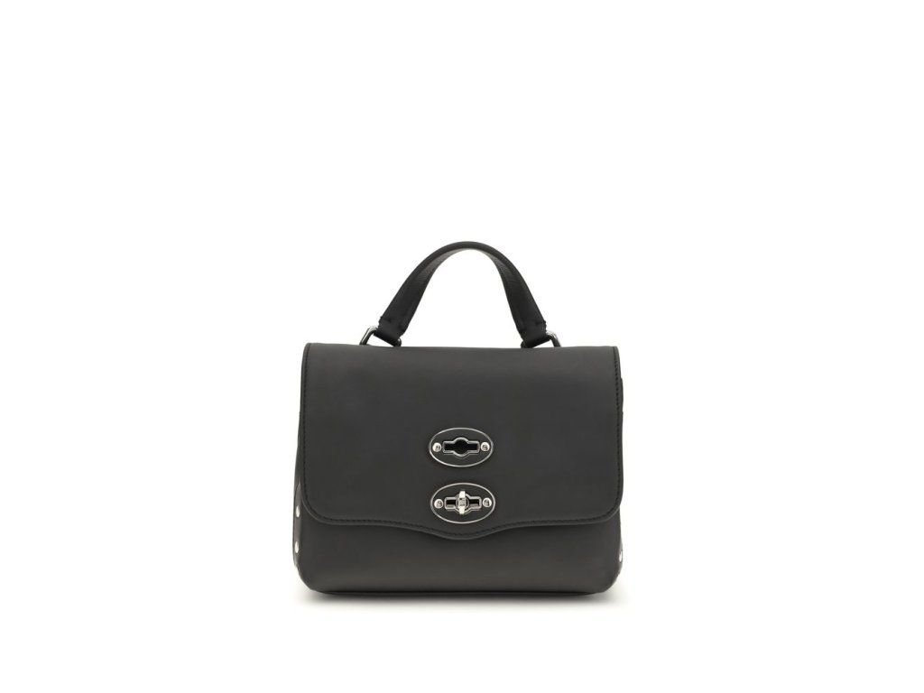 The Saeta Baby leather Postina Handbag by Zanellato is an elegant and functional model, perfect for those looking for a versatile and stylish accessory. The single flat leather handle on the top makes it comfortable to carry by hand, while the adjustable and removable shoulder strap offers the possibility to wear it either on the shoulder or crossbody, adapting to different needs. The front swivel hook closure is a distinctive detail that gives the bag a touch of character, while the flat studs on the side panels add an elepánskýt of originality and a rock-chic accent. A perfect mix of style, practicality and quality.