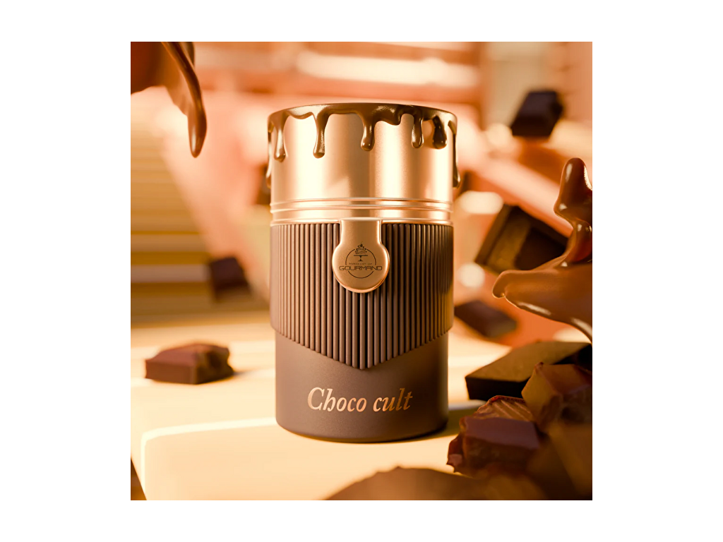 Choco Cult je neodolatelně gurmánská vůně, která zahalí smysly do sladkého, hřejivého a hravě svůdného závoje. Unisex kompozice potěší všechny milovníky sladkých tónů – působí lahodně, útulně a zároveň sofistikovaně. Úvod otevírá bohaté duo karamelu a šťavnatého pomeranče s jemným dotekem bergamotu, které vůni dodávají jiskru, sladkost i lehkou citrusovou svěžest. Srdce je doslova gurmánským potěšením – dominuje krémová čokoláda, kokos a máslové tóny, doplněné o kakao, šťavnatou broskev a černý rybíz. Výsledkem je plná, sladká a sametově hebká kompozice s ovocným podtónem. Základ vůně tvoří smyslná vanilka, hřejivé santalové dřevo a pižmo, které zajišťují dlouhotrvající, jemně krémovou a podmanivou stopu na pokožce. Choco Cult je ideální volbou pro chladnější dny, večerní nošení nebo chvíle, kdy si chcete dopřát pocit komfortu, sladkosti a výjimečnosti v jednom.Vedlejší vůně - Sladká
