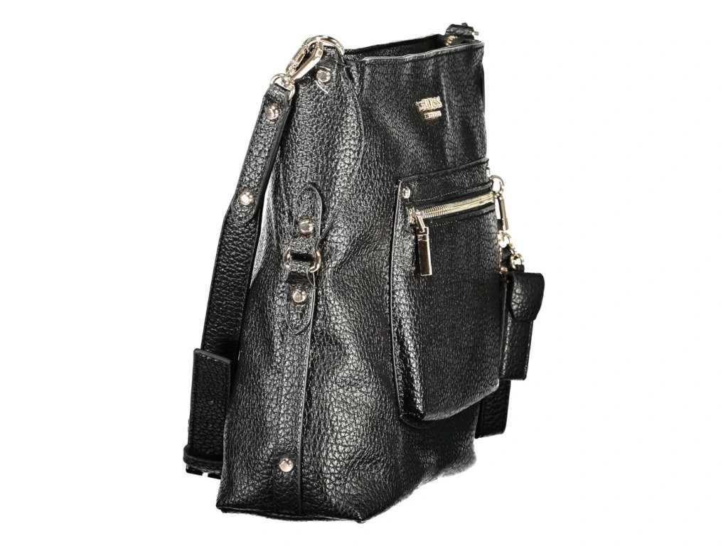 Step out with confidence and flair with the GUESS JEANS Marsha Bag. This masterpiece of chic versatility boasts a removable and adjustable shoulder strap, ensuprsten a perfect fit for any style maven. Organize your essentials effortlessly with two external pockets, an internal pocket, and dedicated spaces for your phone. Security and sophistication come together with a sleek zip closure and a removable keyprsten. And with protective feet, your Marsha bag stays pristine. Indulge in the elegance of Nero, a color that exudes timeless grace.