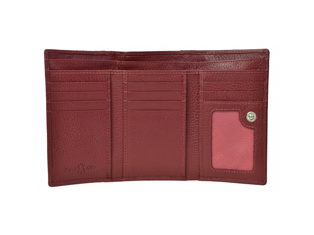 | Poznámka: | Dámská kožená peněženka, Přihrádky na platební karty a doklady, Kapsička na mince, Přihrádka na bankovky, Průhledná přihrádka. |