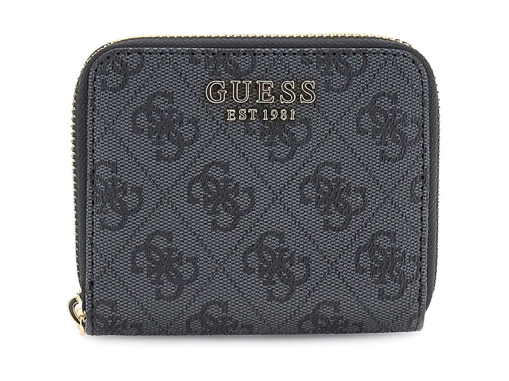| Poznámka: | Malá zipová peněženka, tmavě šedá barva s černým monogramovým vzorem, kovové logo GUESS EST 1981 na přední straně, zapínání na zip po celém obvodu, zlaté kovové detaily, vnitřní uspořádání s kapsou na mince, přihrádkami na karty a prostor na bankovky, kompaktní velikost vhodná i do menších kabelek. |