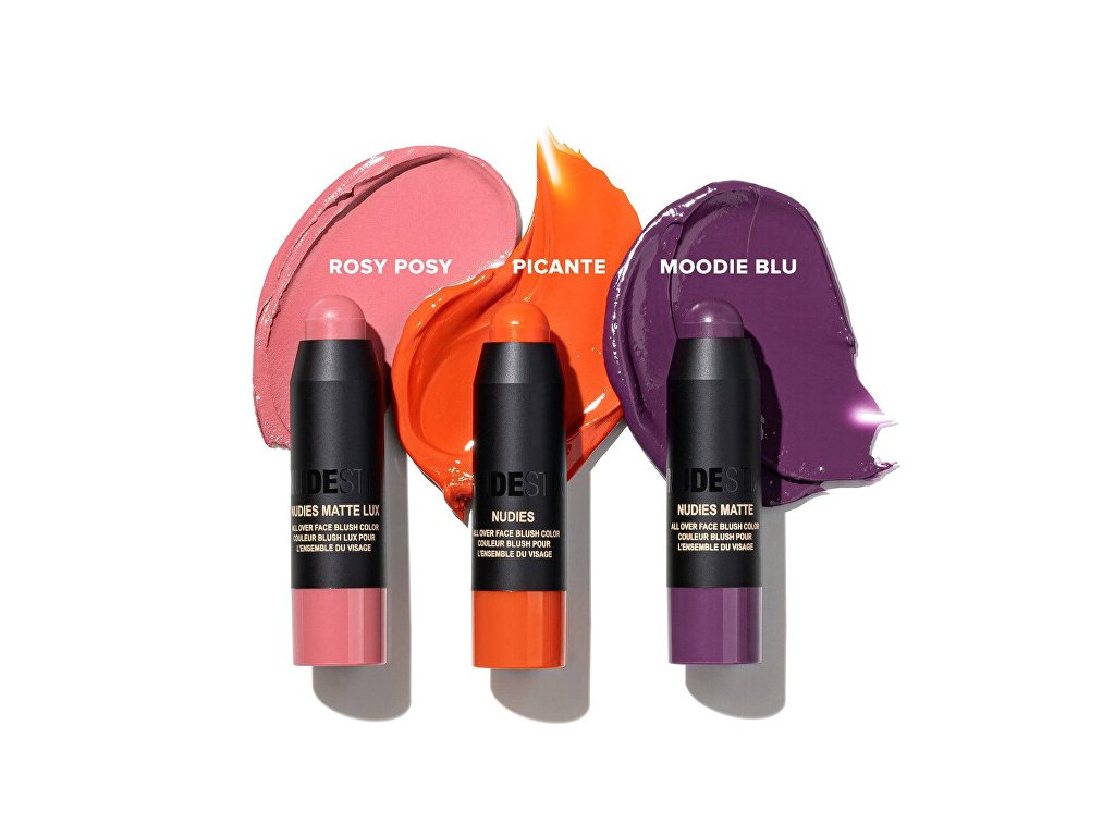 Sada obsahuje: Tyčinka na oči, tváře a rty Nudies Matte Lux Rosy Posy (All Over Face Blush Color) 1,8 g Tyčinka na oči, tváře a rty Nudies Matte Moodie Blu (All Over Face Blush Color) 1,8 g Tyčinka na oči, tváře a rty Nudies Matte Picante (All Over Face Blush Color) 1,8 g Krabička se zrcátkemDoplňkové parametry