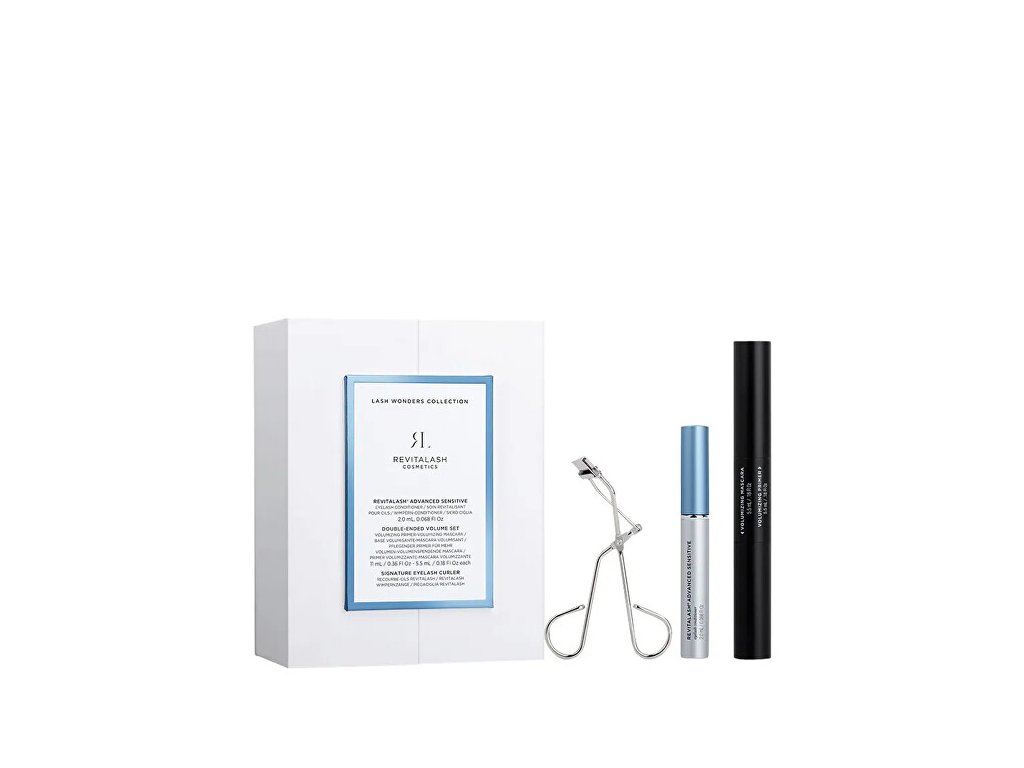 Sada obsahuje: Sérum na řasy pro citlivé oči RevitaLash Advanced Sensitive (Eyelash Conditioner) 2 ml Dvoufázová řasenka pro objem (Voluminizing Double-Ended Mascara & Primer) 16,5 ml Kleštičky na řasyDoplňkové parametry