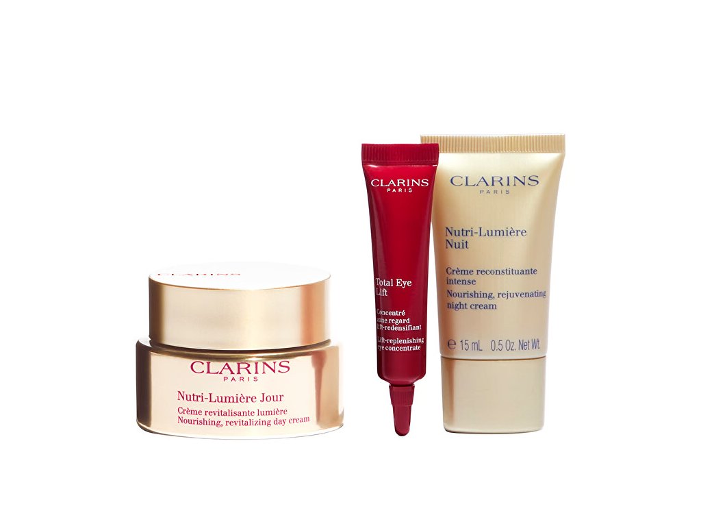Sada obsahuje: Vyživující revitalizační denní krém Nutri-Lumiére (Day Cream) 50 ml Vyživující revitalizační noční krém Nutri-Lumiére (Night Cream) 15 ml Zpevňující oční krém proti vráskám (Total Eye Lift) 7 ml Kosmetická taška 1 ksDoplňkové parametry