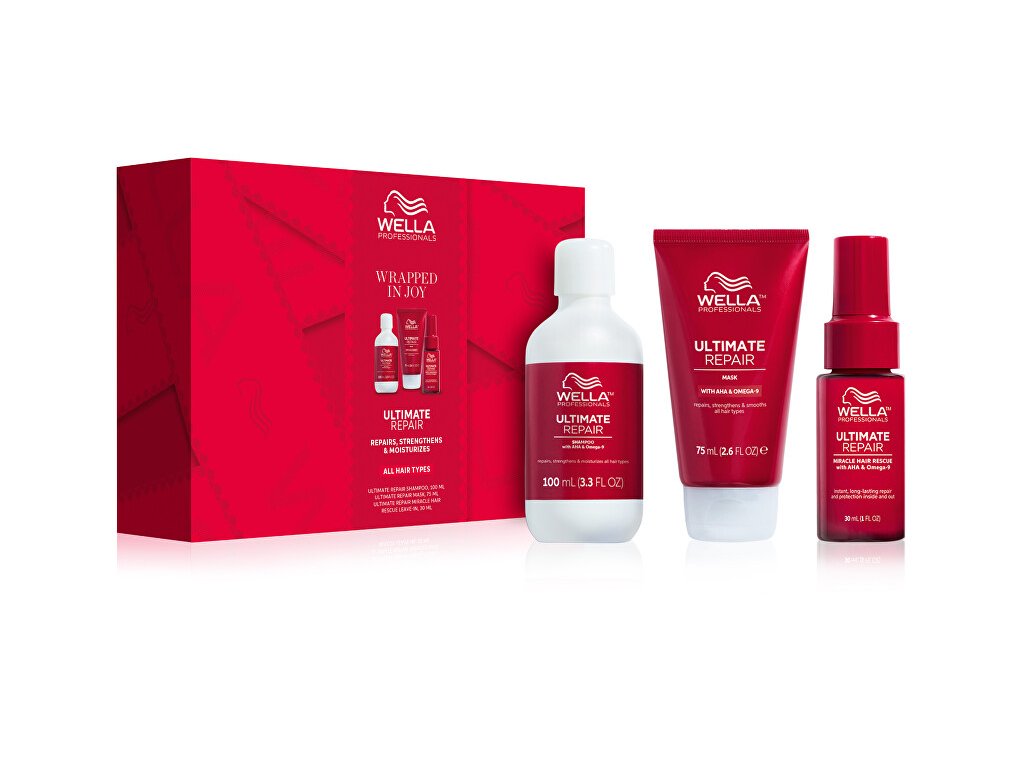 Pečující sada Ultimate Repair pro hydrataci, ochranu a opravu poškozených vlasů. Sada obsahuje: Regenerační šampon pro všechny typy vlasů Ultimate Repair (Shampoo) 100 ml Maska pro regeneraci vlasů Ultimate Repair (Mask) 75 ml Bezoplachové ošetření vlasů Ultimate Repair (Miracle Hair Rescue) 30 mlDoplňkové parametry