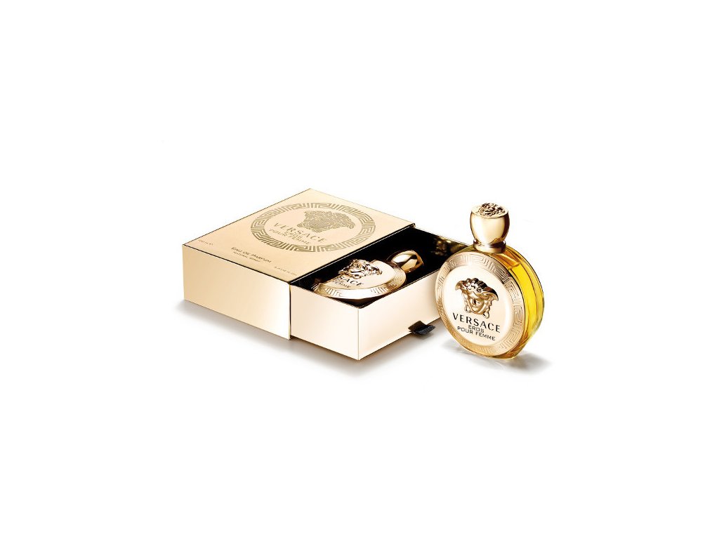 Chvějivý a vzácný, sicilský citron a kalábrijský bergamot upoutají pozornost svojí silnou září. Lahodná a jemná zrnka granátového jablka ohromí a svádí. Jasmín Sambac dodává autentickou a nadčasovou ženskost. Velkorysé okvětní lístky pivoňky přináší sametový dotek, zatímco jasný citrusový květ rozšiřuje květinový akord a odvolává se na kořeny a tradice Versace. Vůně ambroxanu je hluboká a tajemná. Smyslný akord vzácných dřev, jemného santalu a opojného pižma ji perfektně doplňuje. Intenzivní a čarovné tóny probouzející všechny smysly jsou odhaleny. Flakon je zdoben mytologickými motivy – hlava Medúzy je impozantním motivem síly. Do flakónu jsou zakomponovány mytologické kódy DNA Versace. Zlatá hlava Medúzy a reliéf řeckého klíče po obvodu jsou potvrzením jejich imponující síly. Řecký klíč se opakuje i na zadní straně flakónu, kdežto ražba Medúzy zdobí vrchol jeho uzávěru. Nápis Eau de Parfum je uveden na přední straně luxusní krabičky ve tvaru kazety s vysunovací vnitřní částí typickou pro schránky na exkluzivní šperky.Hlavní vůně - Květinová