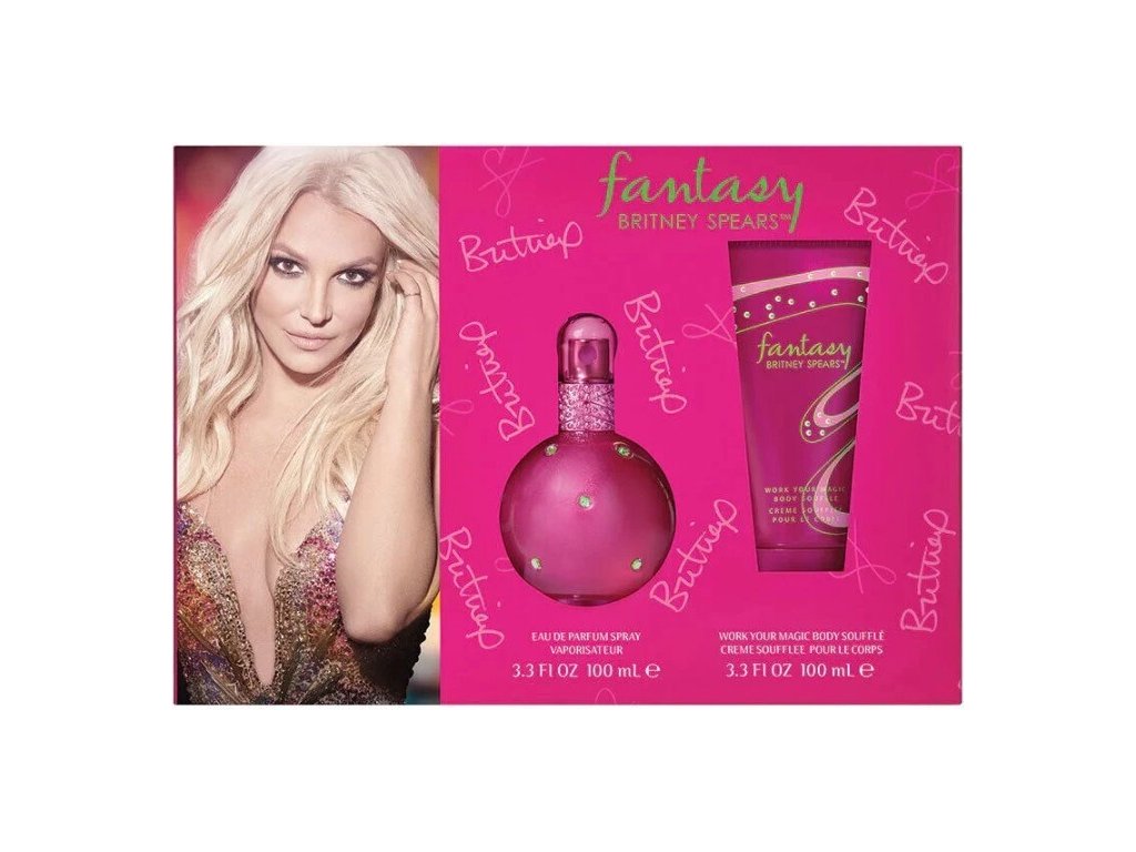 Každý má své sny – a ani popová ikona Britney Spears není výjimkou. Parfémovaná voda Fantasy představuje kouzelný příběh plný magie a vzrušení. Vůně se otevírá hravými, šťavnatými tóny liči, zlaté kdoule a exotického kiwi, které okamžitě upoutají pozornost. V srdci se snoubí sladká vůně lahodných koláčků, jemné bílé orchideje, bohaté čokolády a okvětních lístků jasmínu, čímž vzniká smyslná a neodolatelná harmonie. Základ vůně tvoří podmanivé tóny vzácného dřeva a pižma, které zanechávají nezapomenutelný dojem. Tento magický elixír je ukryt v elegantním flakonu zdobeném třpytivými krystaly, který působí jako skvostný šperk plný snů. Fantasy je stvořena pro ženy, které věří na kouzla a odvážně si plní své sny. Součástí sady je: parfémovaná voda 100 ml sprchový gel 100 mlDoplňkové parametry