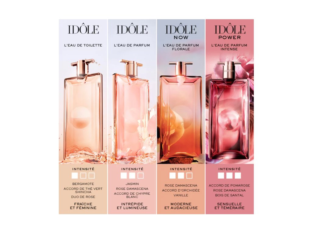 Idôle Power L’Eau De Parfum Intense od značky Lancôme je ztělesněním ženské síly, která nezná hranic. Květinově-dřevitá parfémovaná voda z ikonické kolekce Idôle představuje harmonii síly a elegance. Idôle Power L’Eau De Parfum Intense je oslavou nezávislosti, odvahy a vnitřní síly, která se stává vaší neviditelnou zbraní. Šťavnaté jablko otevírá vonnou kompozici svěžím a zároveň smyslným akordem. V srdci se rozvíjí mayská růže, která zosobňuje vášeň, sebejistotu a ženskost ve své nejčistší podobě. Hluboký a podmanivý základ ze santalového dřeva dodává vůni hladkou hřejivost a nezapomenutelnou intenzitu. Idôle Power je vůně moderní bohyně – ženy, která nečeká na svolení, ale kráčí vpřed s hrdostí, sebevědomím a nezdolným odhodláním dosáhnout svých cílů. Jsi silná. Jsi nezastavitelná. Jsi Idôle. Vůně byla uvedena na trh v roce 2024.Hlavní vůně - Květinová