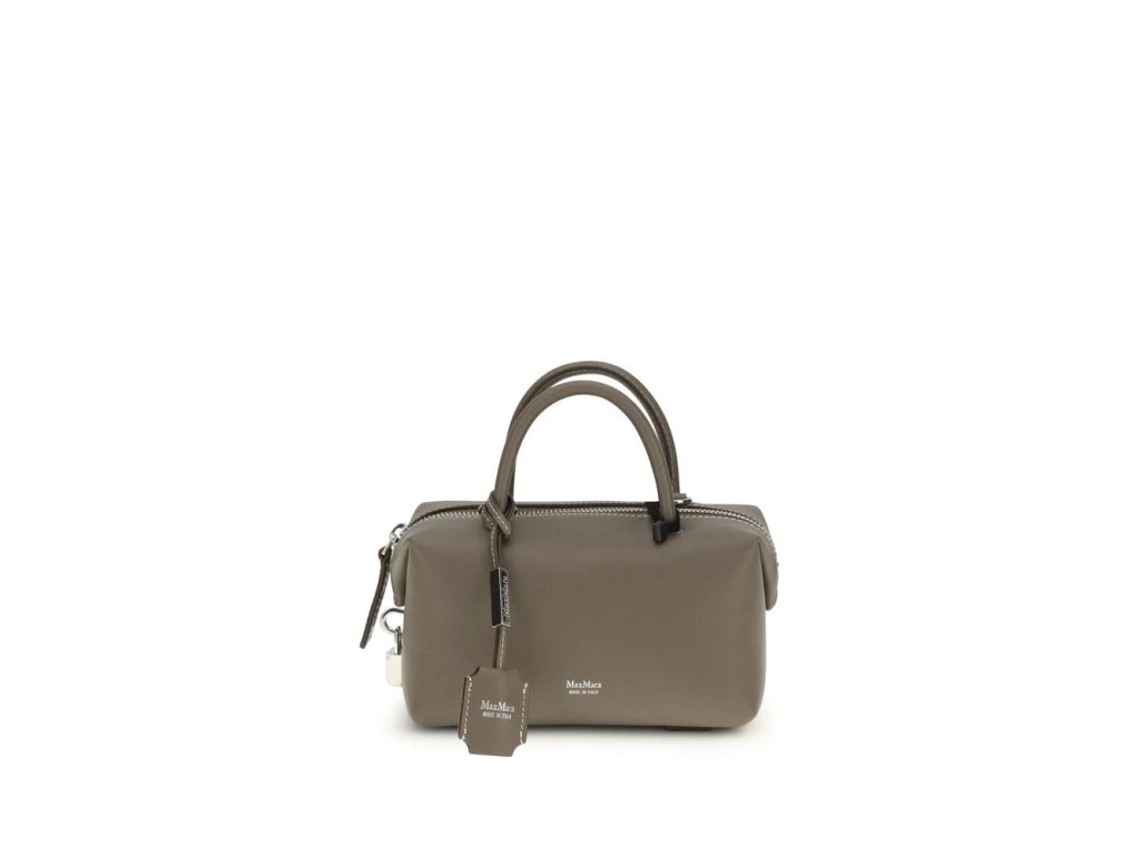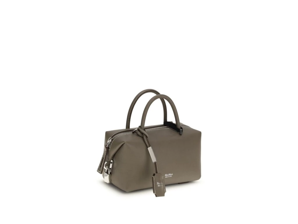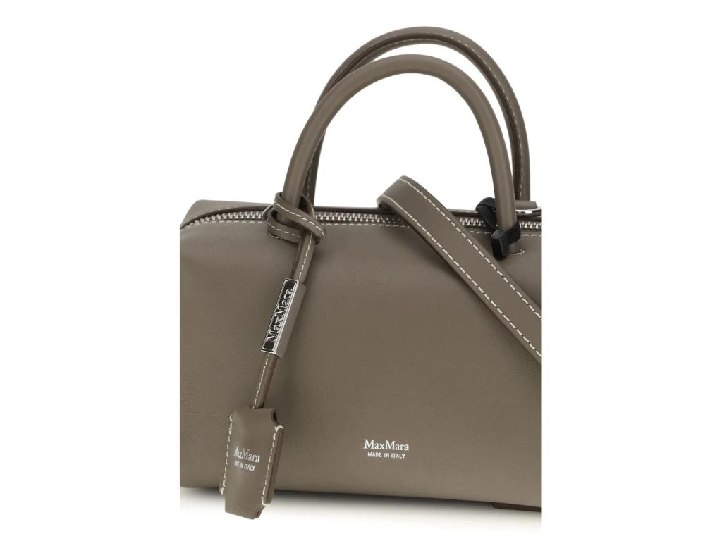 The Holdalls leather Handbag by Max Mara is an elegant and versatile accessory, crafted from smooth calfskin and enhanced by the laminated logo print on the front. Featuprsten two round leather handles and a matching removable shoulder strap, it offers a variety of ways to carry it. The zip closure ensures practicality, while the removable leather keyprsten accessory completes the design with a functional and refined detail.