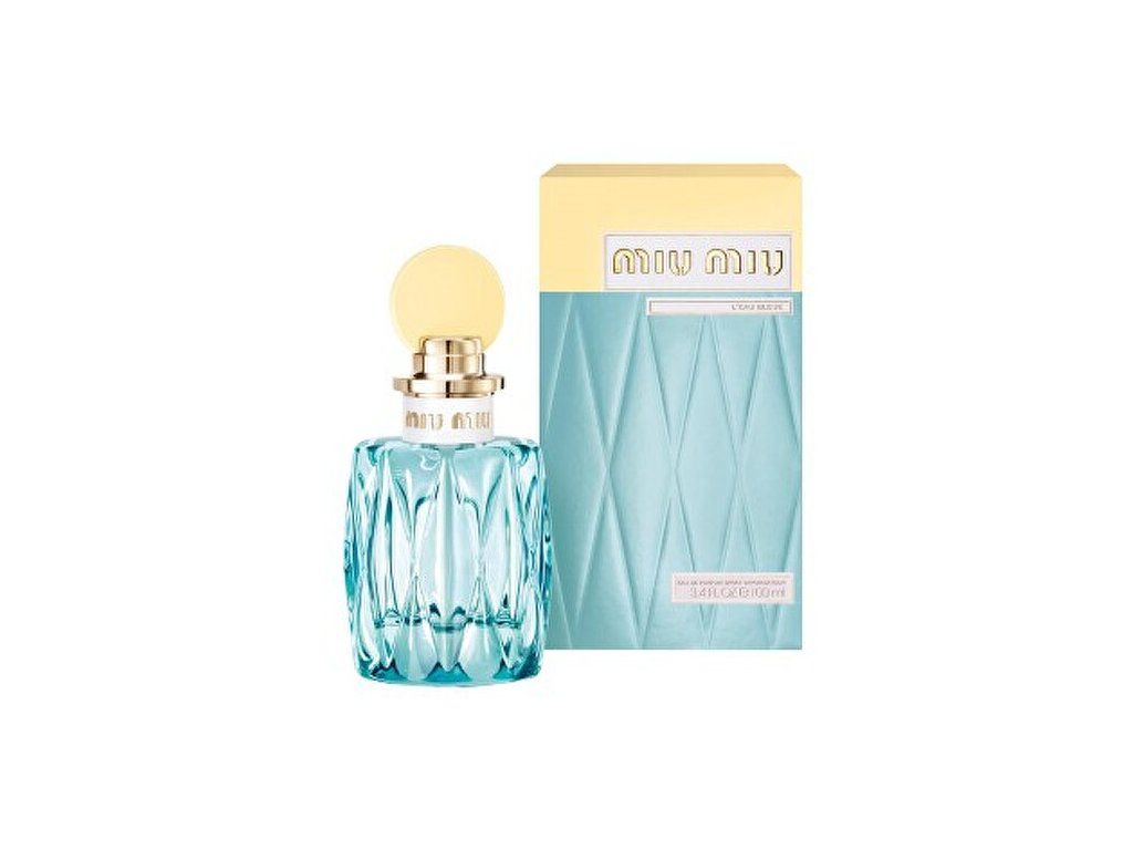 L'Eau Bleue od značky Miu Miu je květinově-zelená vůně pro ženy. Elegantní tyrkysový flakon a štěstí, které v sobě ukrývá, vám zajistí perfektní den. Hlava vůně je čistě květinová a tvoří ji akordy konvalinky. V srdci se mísí bílé květy, zelené tóny, divoká růže, jasmín s kapkami rosy. V základu se rozvoní vzácné dřevo akigala a pižmo. Vůně byla uvedena na trh v roce 2016.Hlavní vůně - Květinová