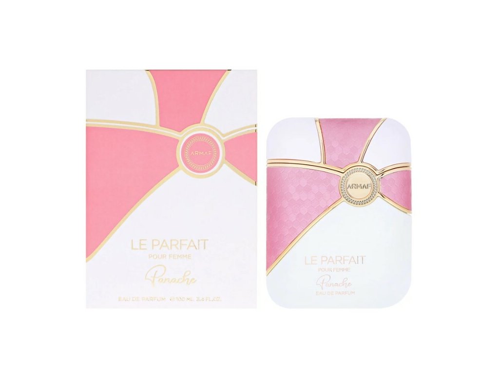 Le Parfait Pour Femme Panache od značky Armaf je půvabná květinová parfémová voda pro ženy. Okouzlující a lehké tóny květin se mísí s jemně pikantním růžovým pepřem, podamnivým pačuli a lahodnou kombinací vanilky a pižma. Vytváří tak vonnou esenci blízkou ženám v každém věku. Jasná ženská vůně oplývající růžovým kouzlem, kterému zcela podlehnete.Vůně byla uvedena na trh v roce 2022.Hlavní vůně - Květinová
