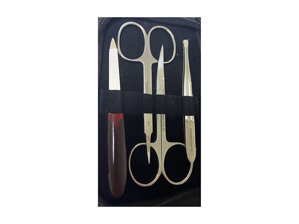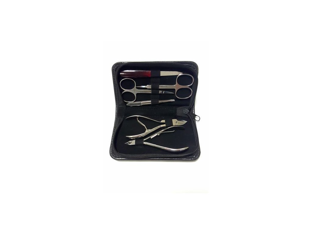 Luxusní 6 dílný set na manikúru obsahující nůžky na nehty, nůžky na kůži, kleště na nehty malé (10 cm), kleště postranní na kůži, pinzeta manikúrní zkosená 9 cm a safírový pilník (9 cm). Manikúra je v kvalitním pevném koženém pouzdru se zipem, které se vejde do každé kabelky. Precizní zpracování všech nástrojů zajistí vaši spokojenost při používání.Doplňkové parametry