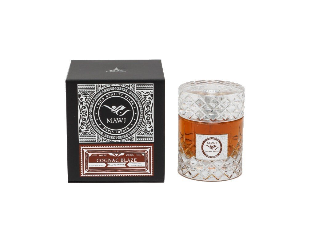 Mawj Cognac Blaze od Paris Corner je odvážná vanilková, ambrová unisex parfémovaná voda, která okouzlí svou sofistikovaností a intenzitou. Mawj Cognac Blaze přináší harmonickou směs hřejivých, kořeněných a sladkých tónů, které zanechávají nezapomenutelný dojem po celý den. Vůně se otevírá svěží mandarinkou, aromatickou davanou a bohatými akordy kávy, které ji činí okamžitě přitažlivou. V srdci se rozvíjí smyslné tóny myrhy, pikantního černého pepře a krémového santalového dřeva. Základ završuje sladká vanilka, tonka fazole a pižmo, které zajišťují dlouhotrvající, neodolatelnou stopu. Vůně byla uvedena na trh v roce 2024.Typ - Parfémová voda