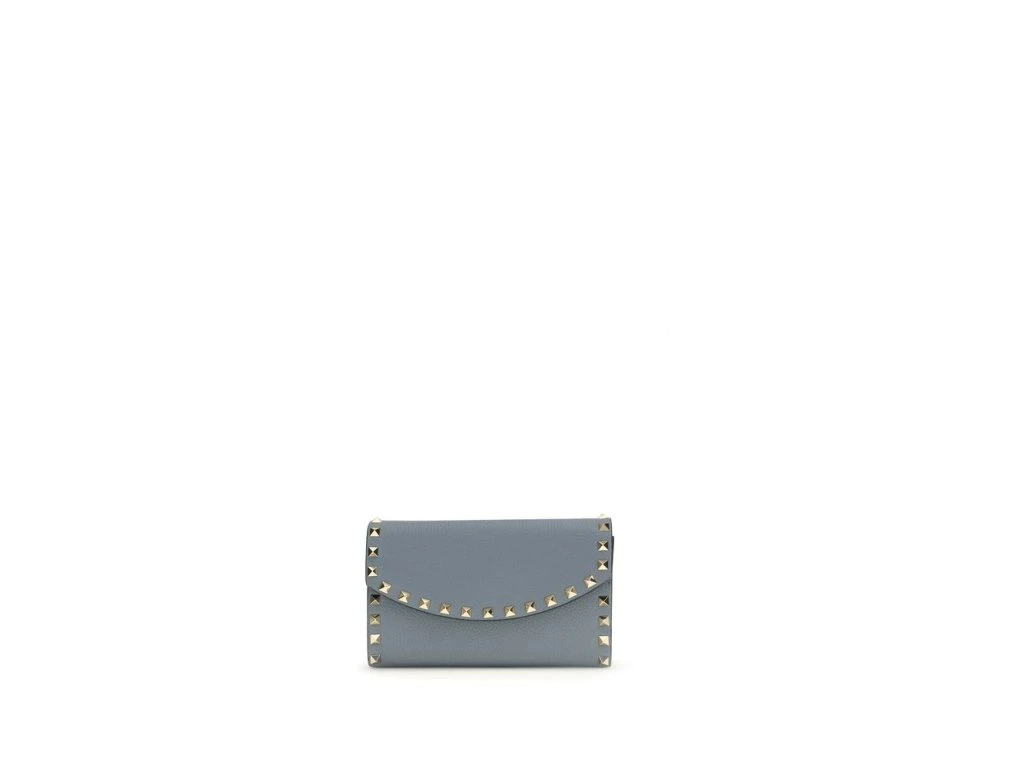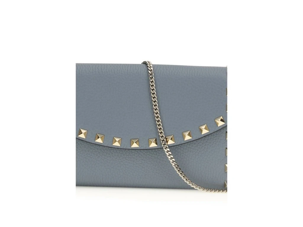 The Rockstud chain Wallet by Valentino Garavani is a refined and versatile accessory, crafted in garnet calfskin for a touch of elegance. Rockstud studs and platinum-finish hardware add a distinctive and bold detail. Thanks to the removable chain, it can be worn either by hand or over the shoulder/across the body, offeprsten practicality and style. The interior is organized with an internal wall pocket and three card compartpánskýts, while the nappa lining adds a touch of luxury. The magnetic button closure ensures security and ease of use.