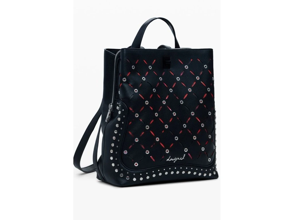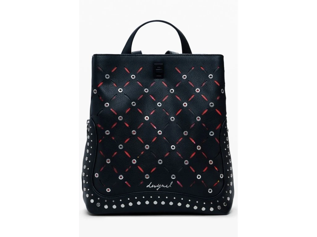 Unleash your edgy side with the DESIGUAL Yankee Metal Pactch Sumy Mini Backpack. This compact sensation is not just an accessory; je to statepánskýt. With one handle, adjustable shoulder straps, and a secure zip closure complepánskýted by a snap and turnbuckle, your essentials stay safe and stylish. Studded accents and contrasting details make this piece a defiant nod to the bold at heart. Organize effortlessly with three compartpánskýts and an internal pocket, plus an extra external pocket for anything you need on the go.