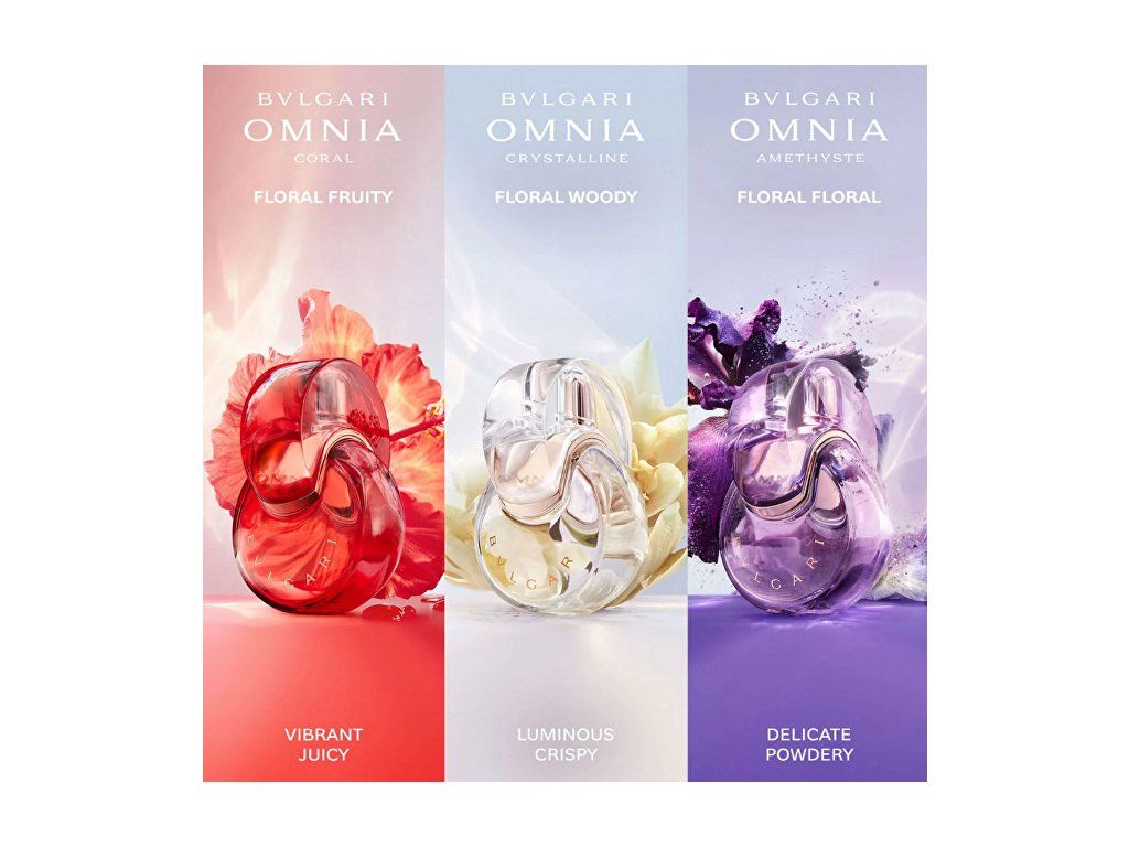 Omnia Coral je romantická květinově-ovocná vůně plná radosti. Přitahuje pozornost svými optimistickými barvami. V hlavě se skrývá bergamot. Srdce zahrnuje vodní leknín, ibišek a granátové jablko, zatímco základ vůně uzavírá sofistikovaná směs pižma a cedrového dřeva. Vůně uvedena na trh v roce 2012.V roce 2023 získala toaletní voda nový, modernější design. Složení vůně je stále stejné.Hlavní vůně - Květinová