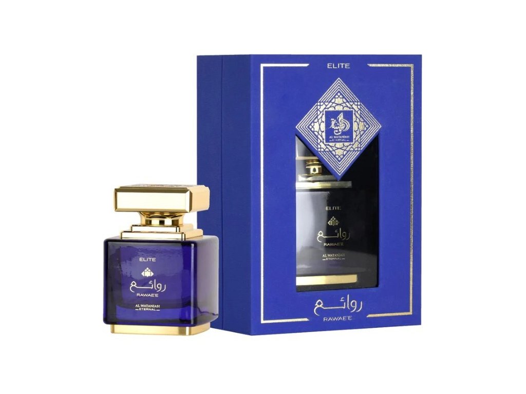 Rawae`e Elite od značky Al Wataniah je výjimečná orientální, fougerová parfémovaná voda, která zosobňuje noblesu a sofistikovanost. Tato vznešená vonná esence nabízí jedinečnou kombinaci orientálních a fougerových akordů, které vytvářejí harmonický a nezapomenutelný zážitek. Vůně začíná svěžími, podmanivými akordy citronu, růže a levandule, které postupně přecházejí do bohatého srdce tvořeného tóny gerania a muškátového oříšku. Základní tóny se rozvíjejí do hlubokých a hřejivých akordů vetiveru, lékořice a pačuli, které dodávají vůni smyslnost a dlouhotrvající výdrž. Rawae`e Elite je dokonalou volbou pro ženy i muže, kteří touží po sofistikované a elegantní vůni pro každou příležitost.Typ - Parfémová voda