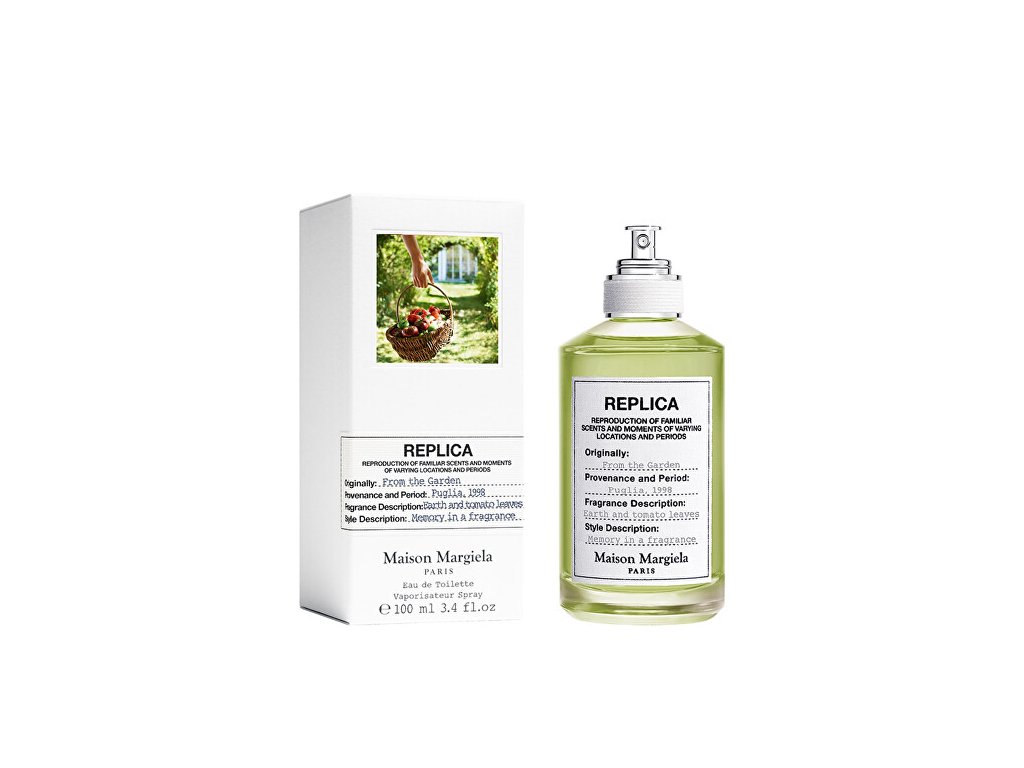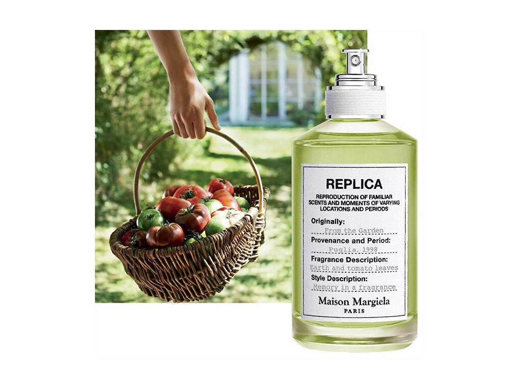 Replica From The Garden je chyprová unisex toaletní voda, kterou vytvořili Olivier Cresp a Sébastien Cresp. Úvodní tóny vás překvapí spojením rajčatových listů se sladkou mandarinkou. Srdce tvoří pelargonie, která směřuje k zemitému základu tvořeném pačuli. Vůně patří do kolekce Replica – tyto vůně mají univerzální sílu vyvolat vzpomínky na milovaná místa nebo příjemné okamžiky. Replica From The Garden zachycuje esenci poklidného slunečného odpoledne stráveného na zahradě. Vůně léta, zemitých tónů, zralých rajčat, okamžiky klidu a hřejivé sluneční paprsky. Je ideální pro ty, kteří touží po propojení s přírodou a harmonickém, uklidňujícím zážitku. Vůně byla uvedena na trh v roce 2023.Hlavní vůně - Chyprová