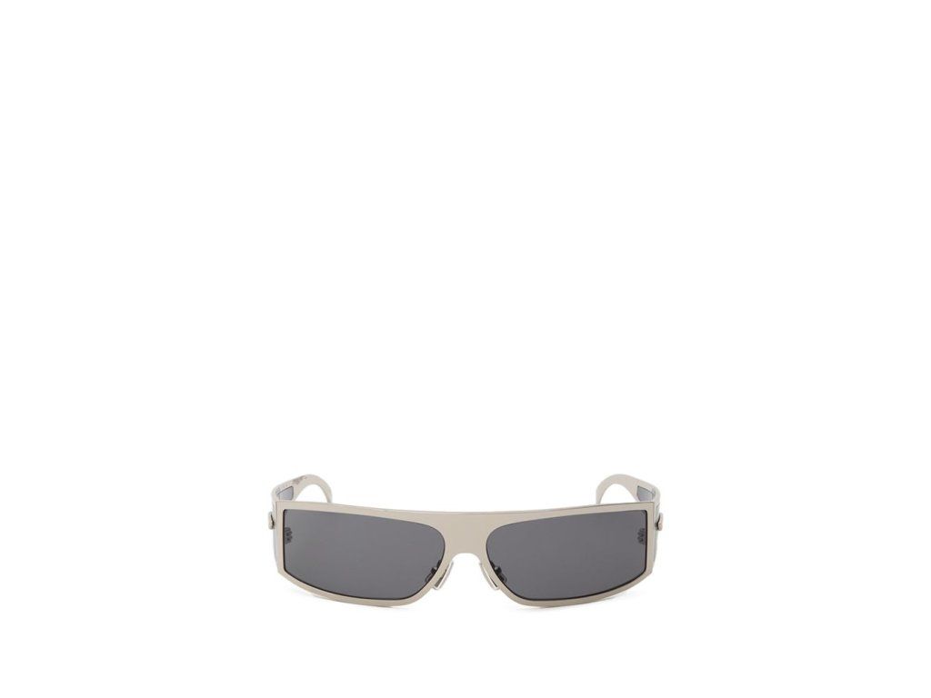 Sluneční brýle Bottega Veneta Stříbrný Metal Wraparound. Obdélníkový zlatý kovový rám, tmavě šedá skla a detaily stranic.