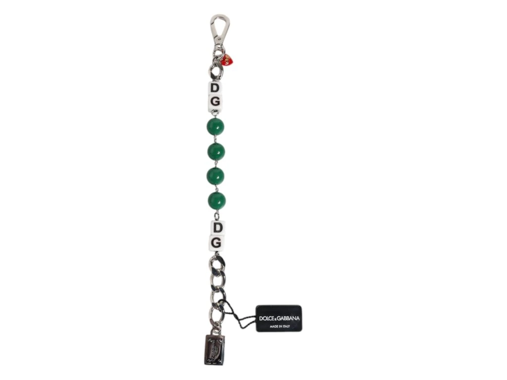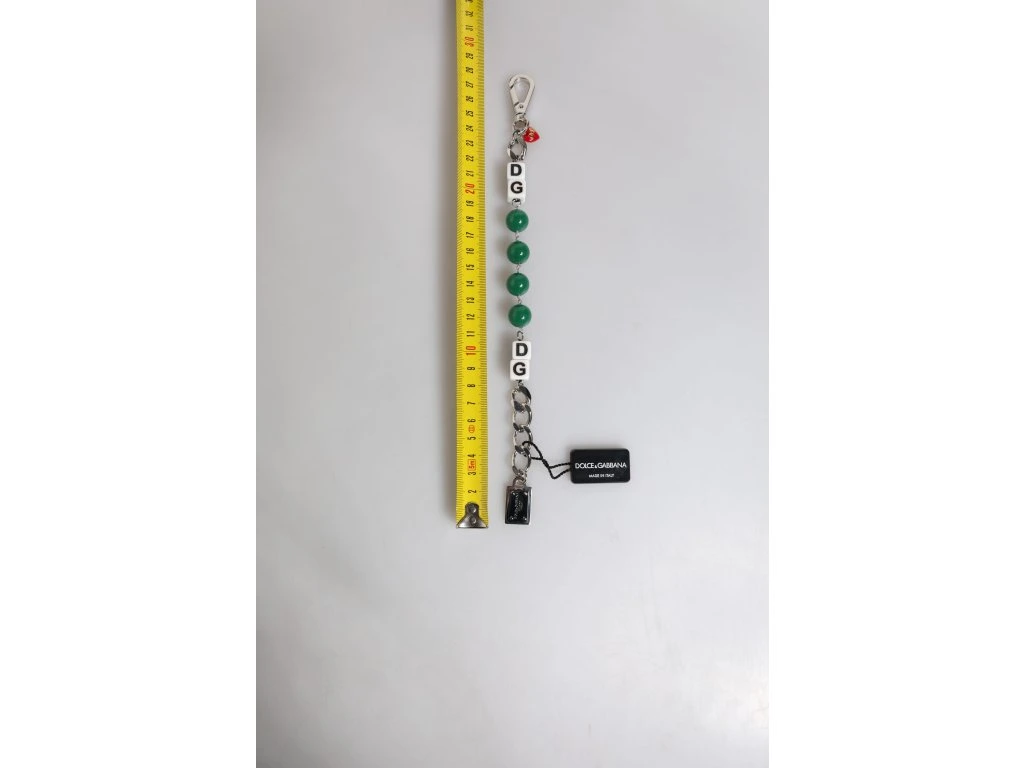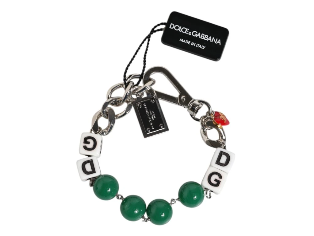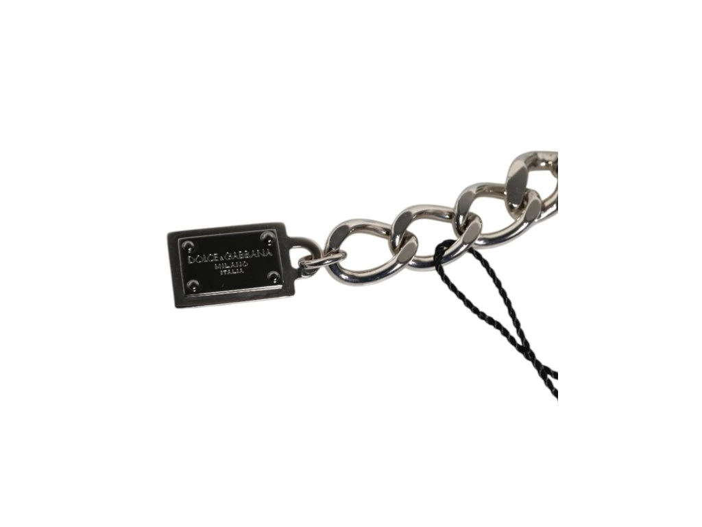 \nNádherný úplně nový, 100% autentický řetízek Dolce & Gabbana se stříbrným tónem náramek. Featuprsten je složitá směs leštěných kovových článků, kostek a podpisové plakety s logem DG.