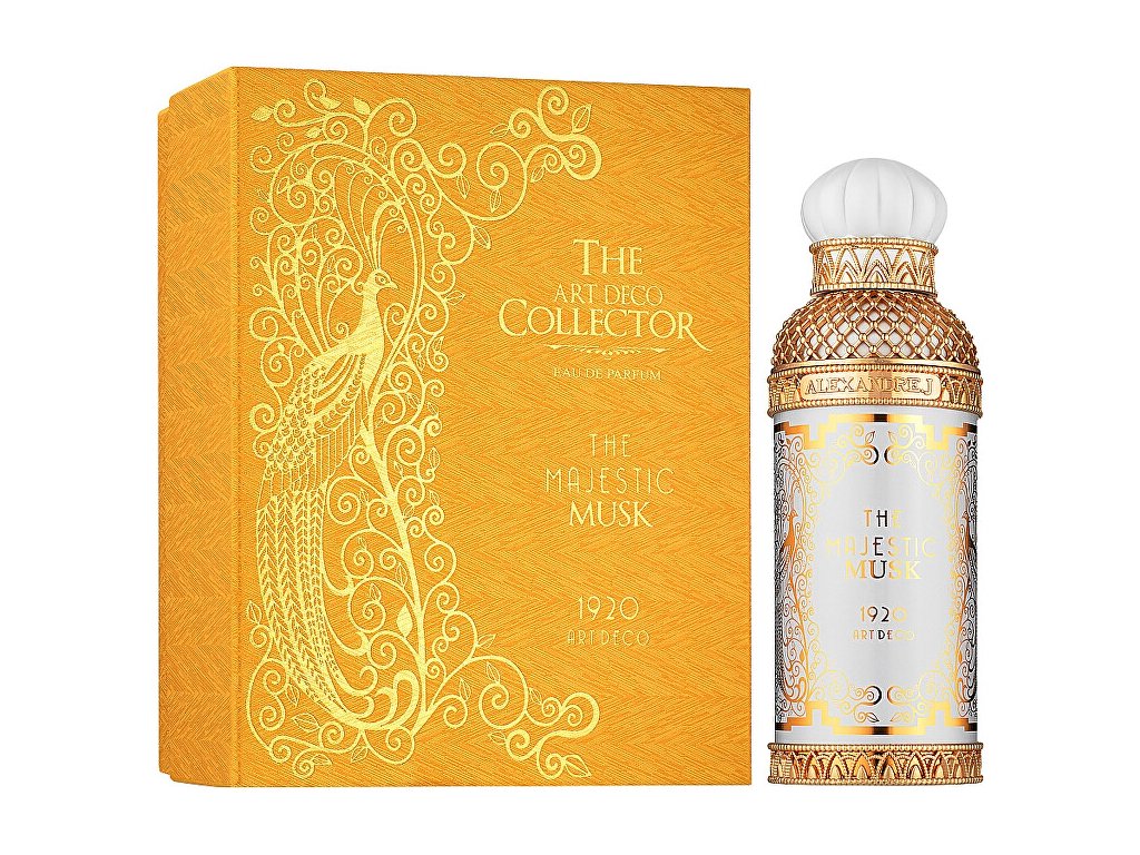 Parfémová voda Majestic Musk je z kolekce Art Deco. Tato orientálně kořeněná vůně je vhodná pro muže a ženy. V počátečních tónech ucítíte bergamot a růžový pepř, který plynule přechází k srdci vůně, ve které je heliotrop, elemi a jalovec. Kompozice končí tóny santalového dřeva, kosatce, semiše a fazole tonky. Vůně byla uvedena na trh v roce 2020.Hlavní vůně - Orientální