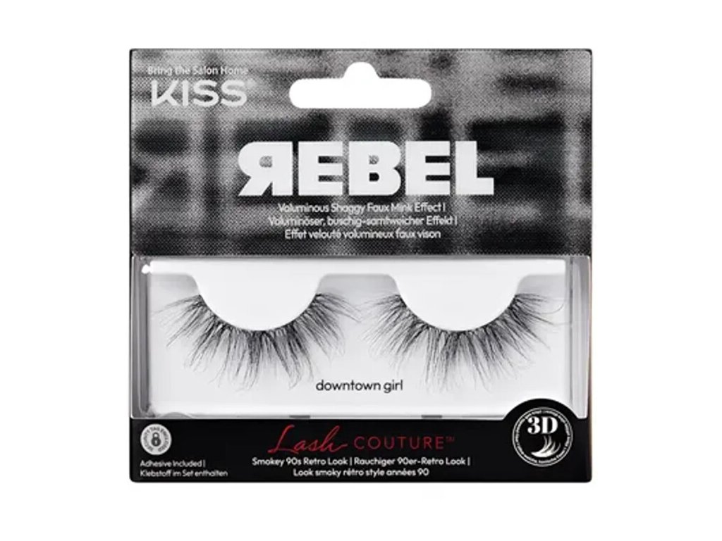Umělé řasy Lash Couture Rebel Collection 01 Downtown Girl, modernizovaný kouřový a nadčasový vzhled 90. let se zakouřenými očními linkami, chaotické a ležérní.Doplňkové parametry