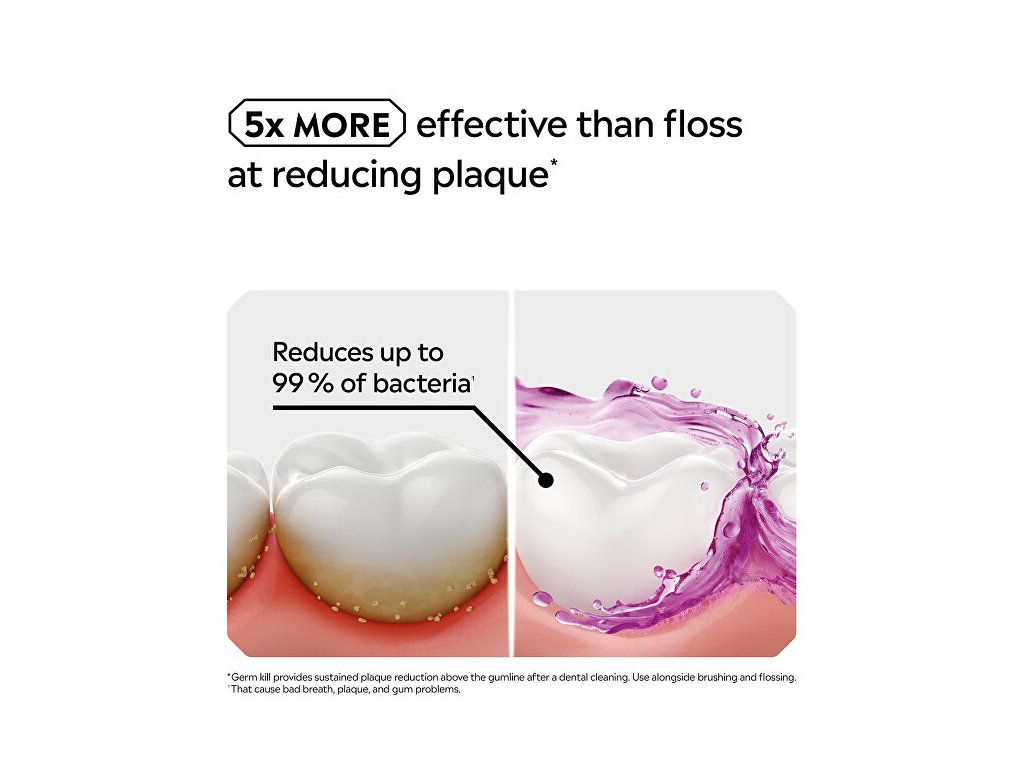 Díky jedinečné kombinaci esenciálních olejů účinně bojuje proti bakteriím i tam, kam se zubní kartáček nedostane: mezi zuby, na dásních a na jazyku