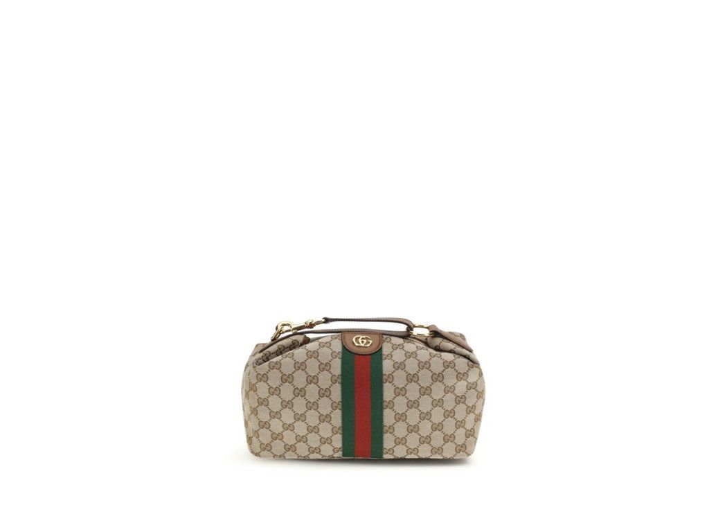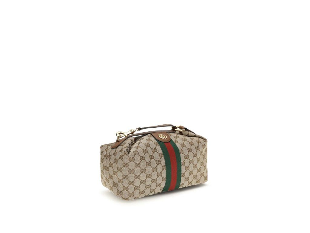 Střední kabelka Vanity Top od Gucci je vyrobena z béžového a hnědého plátna GG s koženým lemováním a doplňky ve zlatém tónu. Dokončeno s ikonickým Double G, má posuvnou horní rukojeť, odnímatelný a nastavitelný kožený ramenní popruh, zapínání na zip a zelenou bavlněnou a lněnou podšívku, která kombinuje ikonickou eleganci, funkčnost a všestrannost pro každodenní použití.