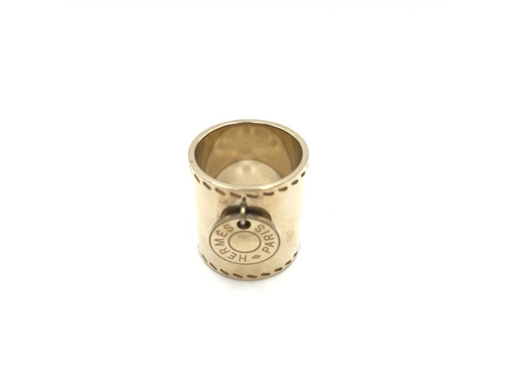 Představujeme nádherný doplněk Hermès Zlatý Tone Scarf Prsten, nadčasový kousek, který ztělesňuje eleganci a sofistikovanost, která je synonymem značky Hermès. Toto příslušenství, klasifikované jako B pro svůj dobrý stav, je testapánským enduprsten kvality a řemeslného zpracování Hermès.